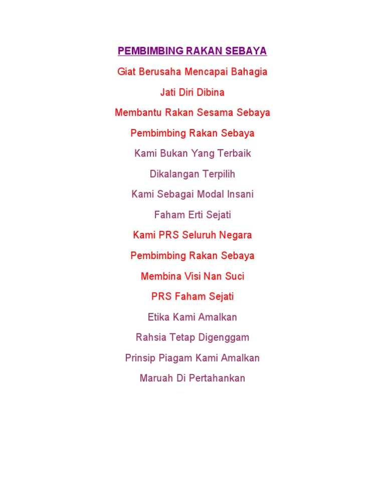 Pembimbing Rakan Sebaya Menawar Khidmat Bakti Menjana Kegemilangan Wawasan Negara Kami Berdiri Megah Dengan Tekad Dan Harapan Membantu Dan Membimbing.